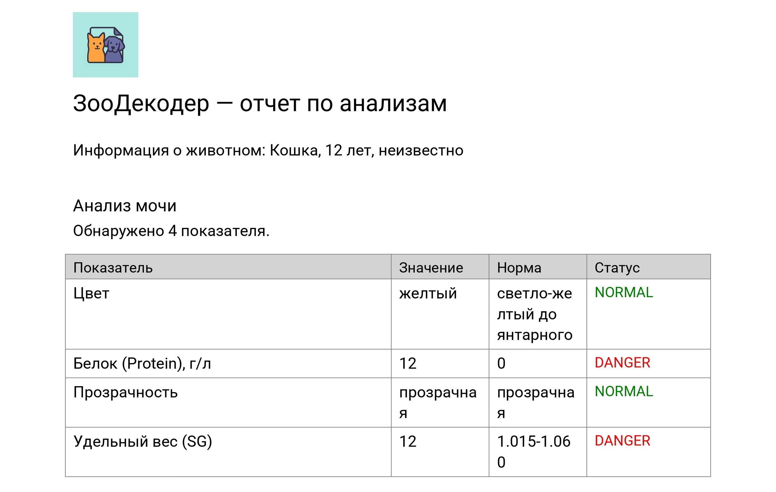 Расшифровка анализов кота без медицинских терминов. Просто заполните форму — и получите понятный результат.